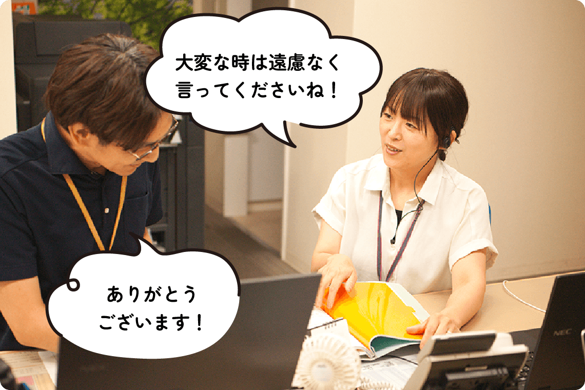 相談・生活支援担当者は、施設利用者さまやご家族と施設・地域との橋渡し役です。入退所の相談や利用者面談、契約手続き、ショートステイの調整などを行い、利用者さまがその人らしく生活できるよう、制度・人・環境をつなげる重要な役割を担います。日々の業務は多岐にわたり、送迎や配車準備、利用実績の確認、書類作成、電話対応、担当者会議への参加、行政や関係機関との連携などを行います。また、地域包括支援センターでは、地域のケアマネジャーへの支援や研修会開催、困難ケースへの後方支援を通じて、地域全体の高齢者支援に貢献しています。
