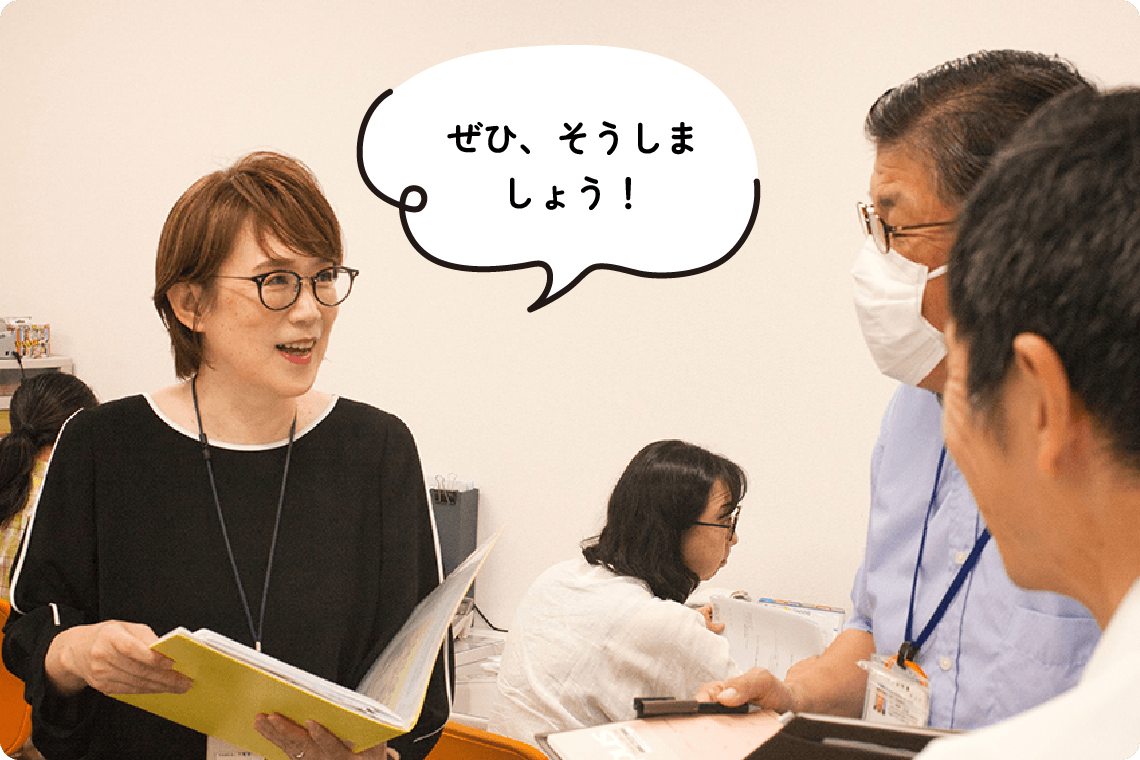 地域包括支援センターでは、軽度の介護認定者の自立支援を中心に、地域資源や予防サービスを活用した支援を提案。多職種チームと連携しながら、住み慣れた地域で安心して暮らせるよう支えます。