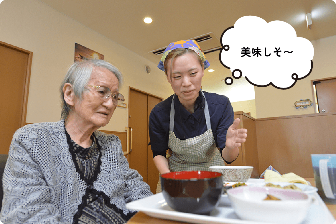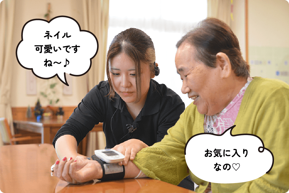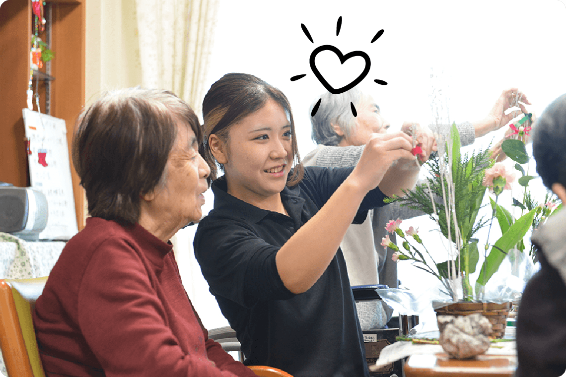 介護職員の仕事は、単なる介助ではなく、ご利用者さまが「その人らしく安心して暮らせる毎日」を実現すること。「ありがとう」の言葉や笑顔に直接ふれられることが、大きなやりがいにつながります。
